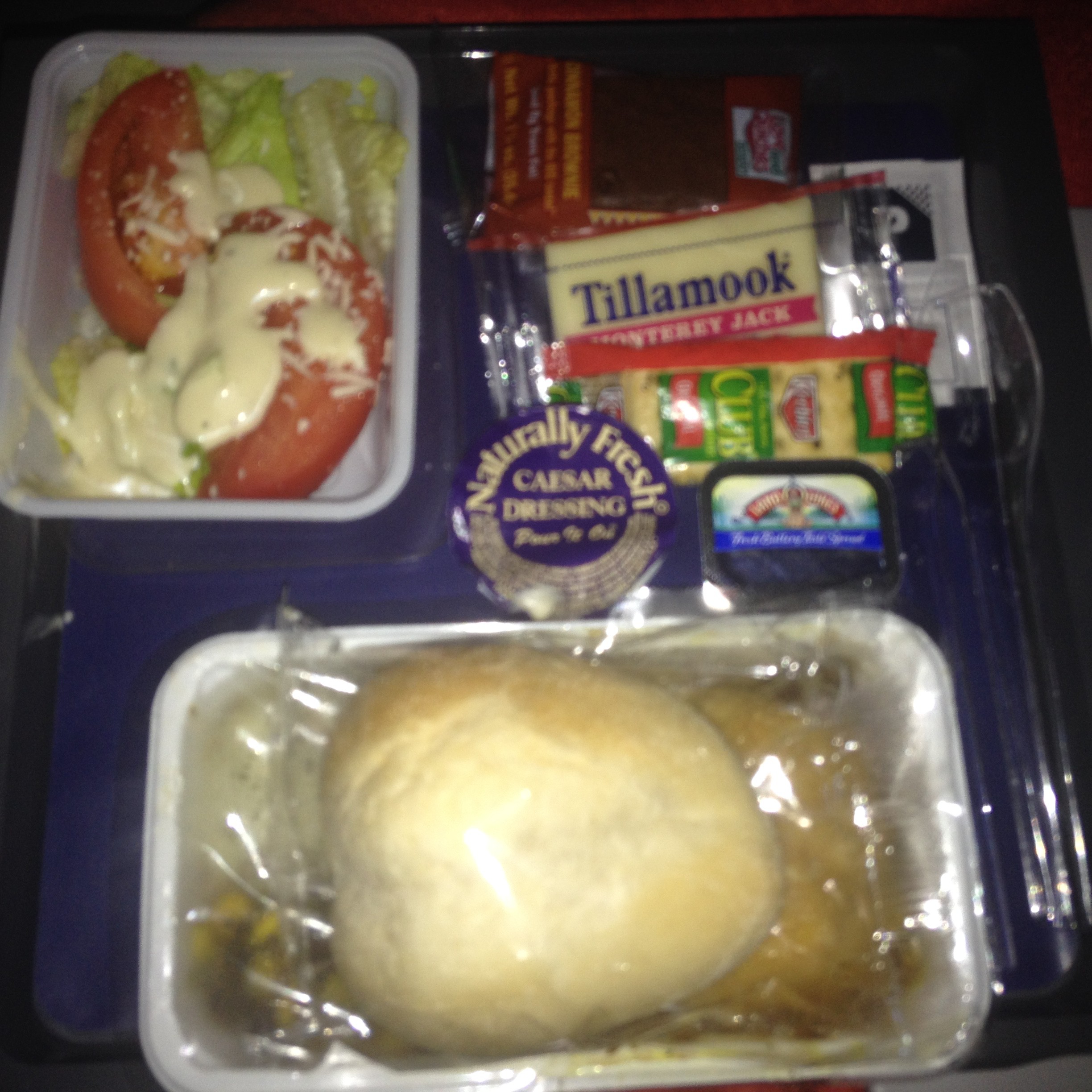 The meal was OK with a nice salad, chicken and potato mash and brownie for dessert. The meat in the main course tasted a little chemical, however.