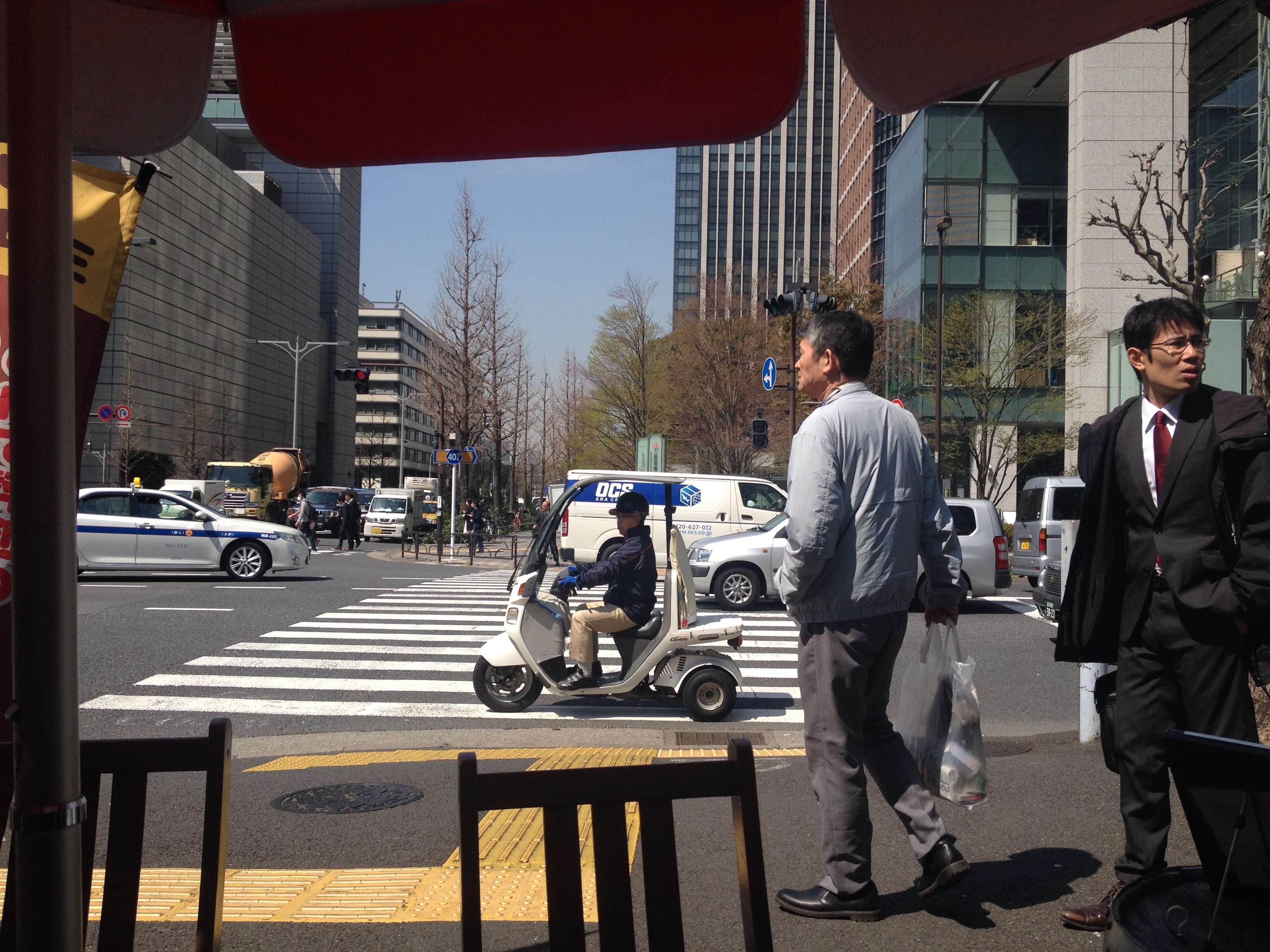@Edi, Firmenhymne absingen konnten wir noch nicht beobachten, aber dafür tragen nach wie vor alle Salarymen (japanisch für Büroangestellte) weiße Hemden, Krawatte, blank gewienerte Schuhe und Anzug. In Schwarz oder Dunkelblau – die schrillen Futzis aus dem Marketing auch mal in Anthrazit oder Beige. Dazu schwarze Bürotasche und beigen Trenchcoat (auch die Frauen).