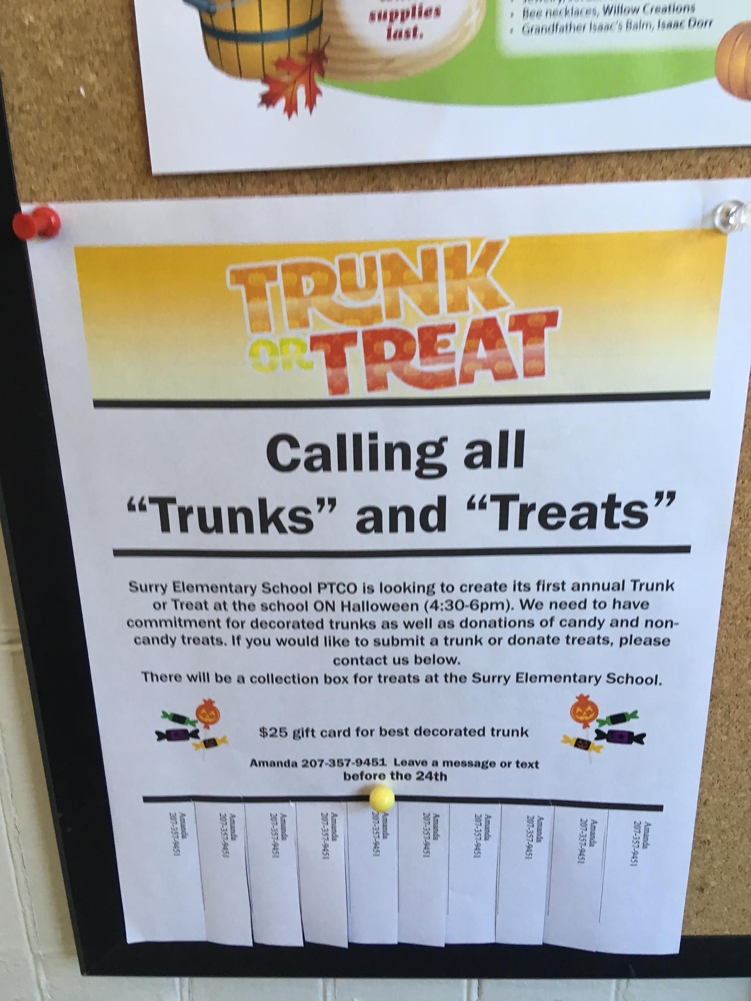 Am eingangs erwähnten Bulletin Board konnte noch dann noch eine (mir zumindest) neue amerikanische Sonderheit namens “Trunk or Treat” kennenlernen, die an diesem Ort Ende Oktober gleich zweimal abgehalten wird:
