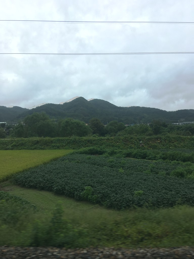 The journey south starts crossing the Hangang River a few minutes after leaving the station and then takes some 45 minutes to leave the suburbs of the capital behind.