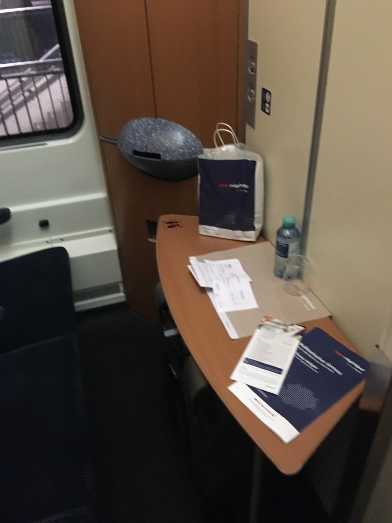 There also was a comprehensive dinner menu with drinks snacks and a few hot options. I was tempted given that this was an Austrian train and I they usually get those things right. The prizes were moderate, but I still had plenty of travel snacks from Albert Heijn, my go-to provider of travel provisions in The Netherlands – so I resisted.