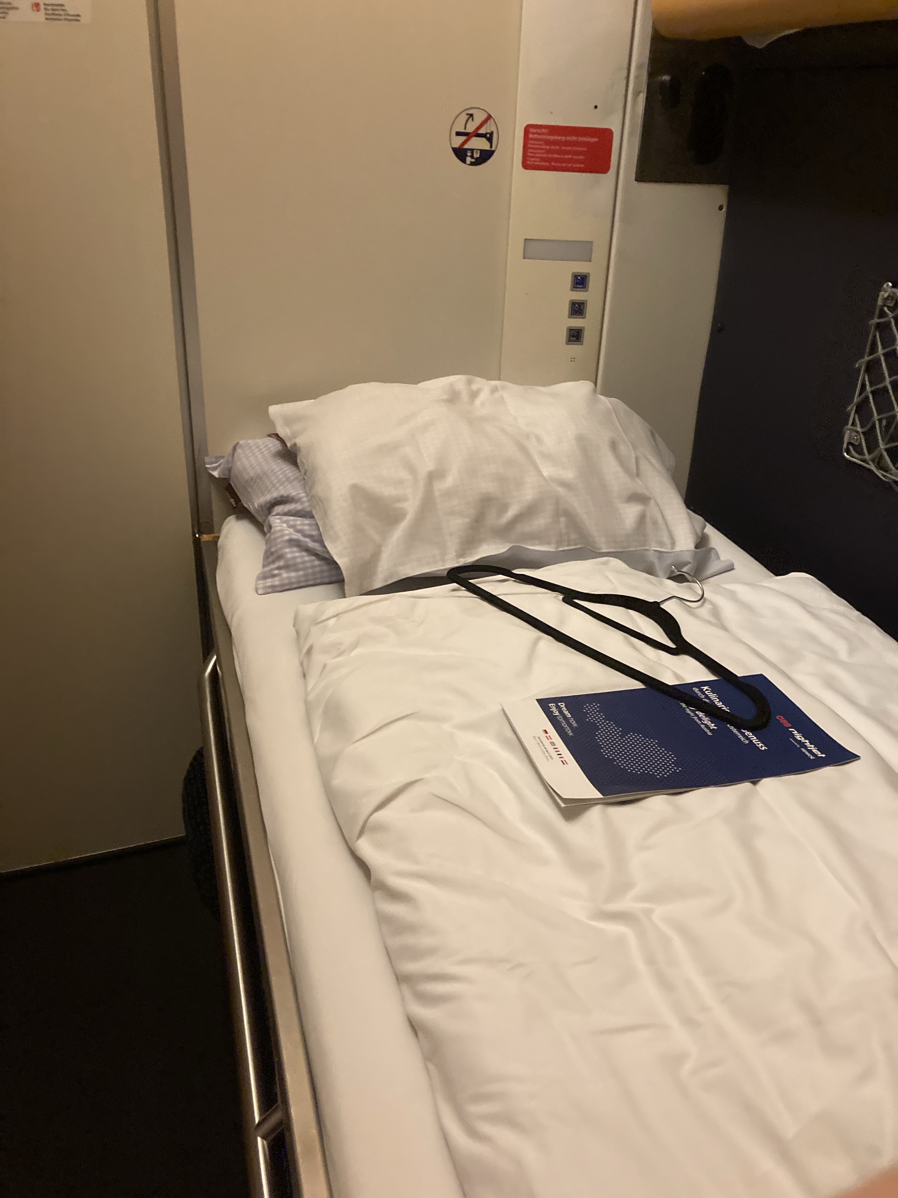 My bed was already made up and looked comfortable with ÖBB’s trademark checkered pillow covers. The pillows are pretty soft and so I had to nick from the spare ones to rest my head appropriately.